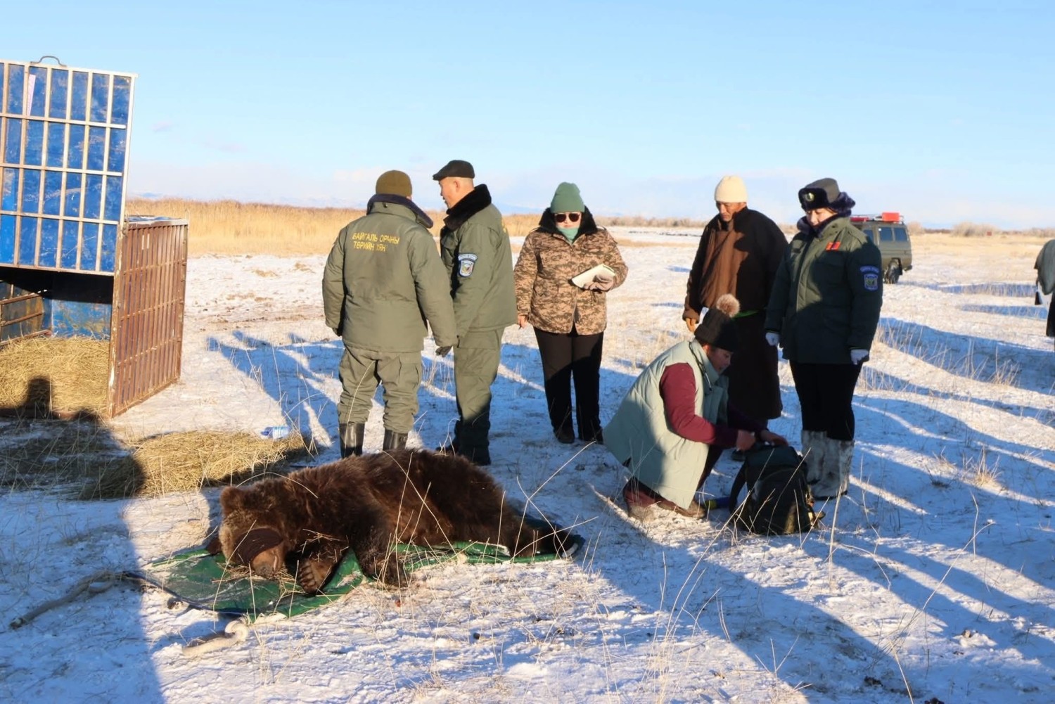 On November 30, the team anesthetized the bear in the trap to perform health checks, take measurements and collect data. Following these procedures, the bear was transferred to the Khan Khentii strictly protected area.