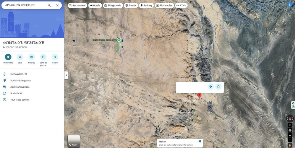 - 57 km southeast of the centre of Chandmani soum, Govi-Altai province