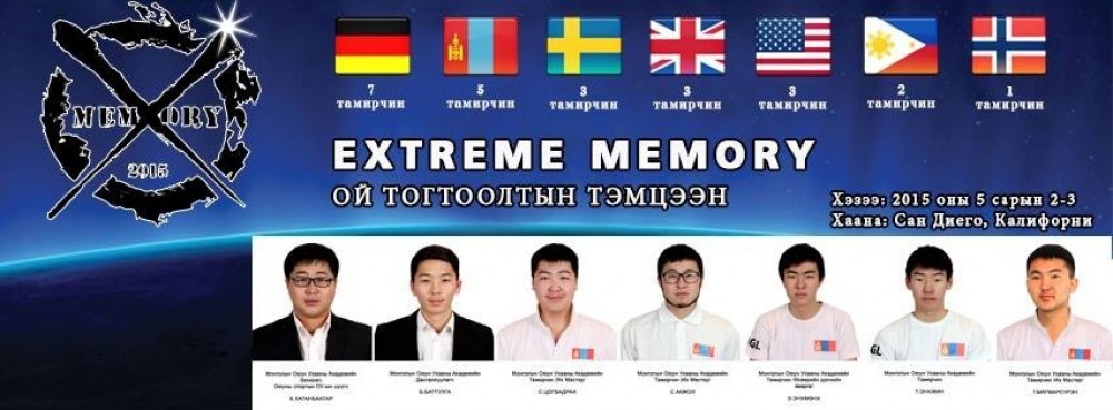 The Competition will be two-day event held on May 2nd and 3rd, 2015 at the Dart Neuroscience Convention Center in San Diego, CA and offering money prizes from a pool of $76,000. Mongolia is represented by five mental athletes and they headed to US, today, with their referee and trainer.