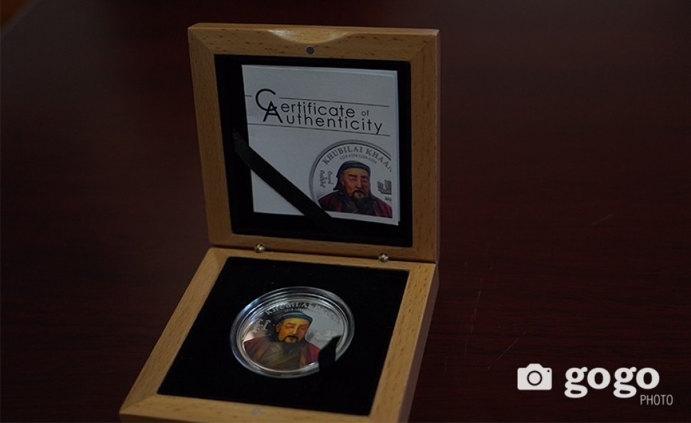 Bank of Mongolia issued silver coin with Khubilai Khan in view of 800th anniversary of his birth. Anniversary coins were made in China by the order of Bank of Mongolia. History states that fifth Khaan of Ikh Mongol Khubilai was born in autumn of 1215.