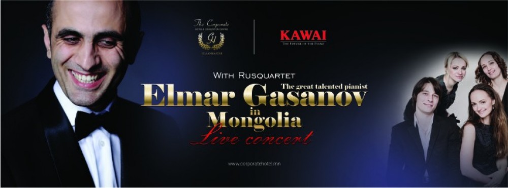 Recognized by the world for his talent, the famous Russian pianist Elmar Gasanov has been invited to play at the grand opening of our concert hall. This elite event is organized in collaboration by The Corporate Hotel and Convention Centre and KAWAI Mongolia. Pianist Elmar Gasanov will be performing with the popular up and coming violin quartet, Rusquartet.