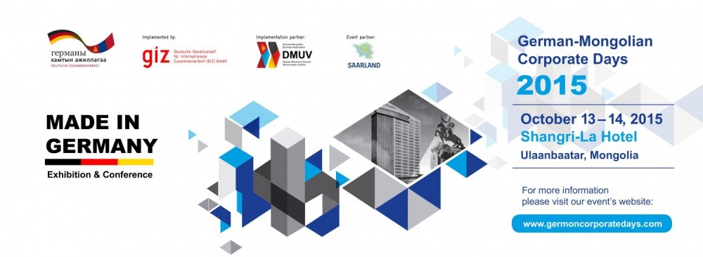 The Integrated Mineral Resource Initiative (IMRI) of GIZ and the German-Mongolian Business Association (DMUV) are jointly organizing the German-Mongolian Corporate Days – “Made in Germany” on October 13 and 14, 2015 in Ulaanbaatar.
