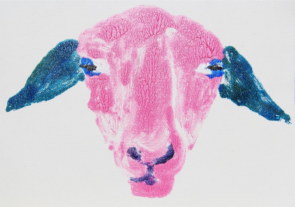 Exhibition displays over 30 portraits of sheep, modern works created using monoprint method. Shepherding person is treated in special way by Mongolian tradition. For artist Enerel, opening day was her shepherding day.