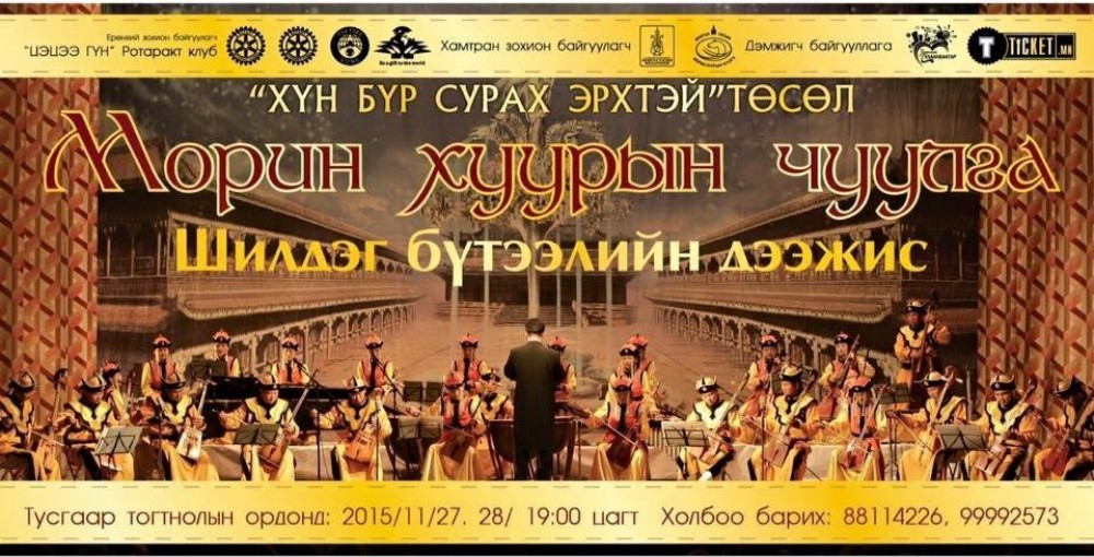 State-honered artist and music conductor D.Tuvshinsaikhan will lead the concert, as the ensemble will perform its best music for two days.