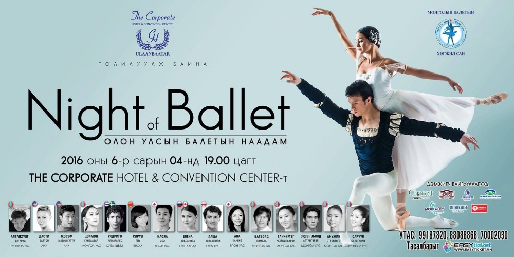 International ballet dancers from Mongolia, USA, Canada, Japan, Cuba, Turkey, Argentina and Spain to perform world classics at Mongolian stage.