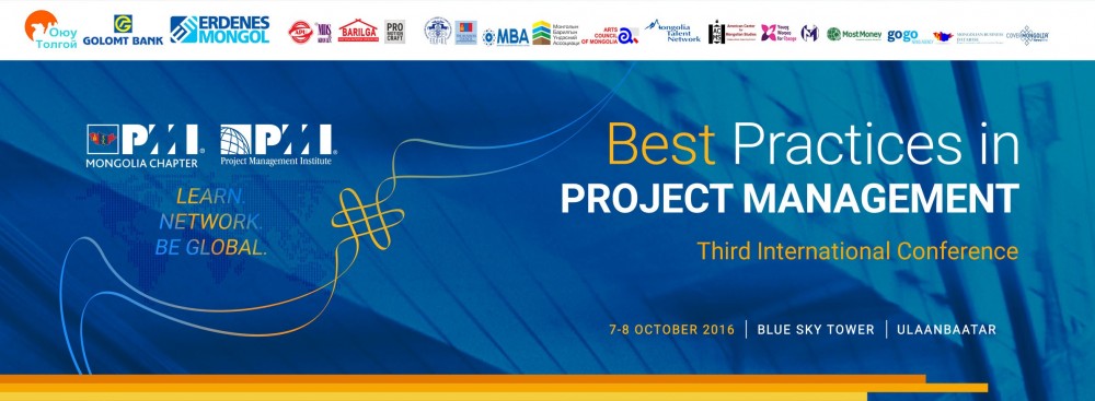Project Management Institute (PMI®) Mongolia Chapter is inviting project management professionals, CEOs, business analysts to two-day International Project Management Conference under the theme of 'Best Practices in Project Management' to be held on October 7-8, 2016 at the Blue Sky conference hall, Ulaanbaatar, Mongolia.