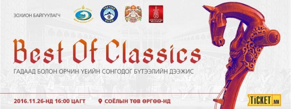 State Morin Khuur Ensemble is presenting its “Best of Classics” concert on November 26th in the concert hall of Central Cultural Palace.