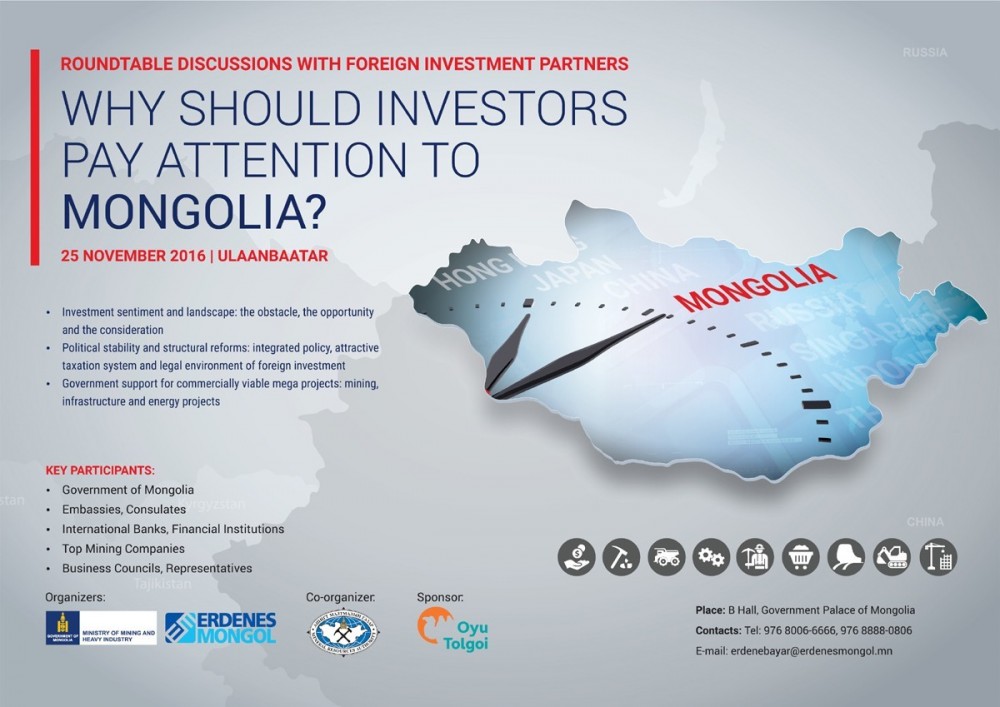 Erdenes Mongol LLC and the Ministry of Mining planned and prepared to hold a roundtable meetingentitled “Why should investors pay attention to Mongolia” with the attendance of international investors. But yesterday, with only 3 days to go, the government decided to make 26November a holiday celebrating Mongolia’s independence.