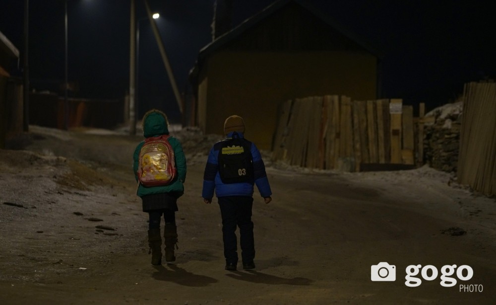 104th secondary school of the Songinokhairkhan district is one of the 22 schools that are using three-shift system. Students of 4th and 5th grades are going on third shift. It is tough for children under 10 years old to walk for home in the dark and cold winter night. In the winter it gets dark at 5pm in Mongolia. Most children are picked up by their parents, brothers or sisters. However it is heartbreaking to hear that children from difficult background walk alone in dark streets with fear.