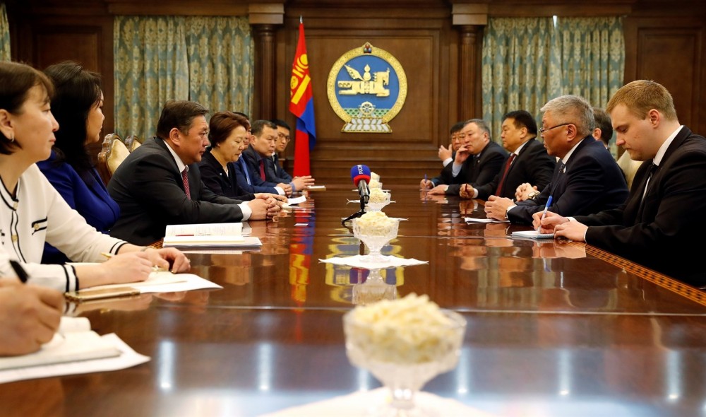 Speaker Enkhbold Miyegombo meets parliamentary delegates led by Tsyrenov-Dashi Dorzhiev, Chairman of the People’s Khural of the Republic of Buryatia of the Russian Federation.