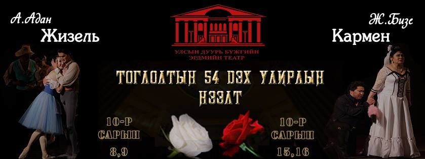 Tax: MNT 10,000, 20,000, 30,000 and tickets are available at ticket office of Mongolian State Academic Theatre of Opera and Ballet and www.ticket.mn