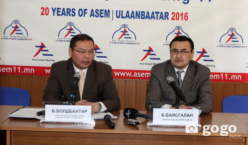 B. Boldbaatar, Secretary General of the Parliament Secretariat and head of the working unit of the National Committee and B. Bayasgalan, the Deputy Chief of ASEM Office of Mongolia made press session today on the preparation for the ASEP 9 meeting.