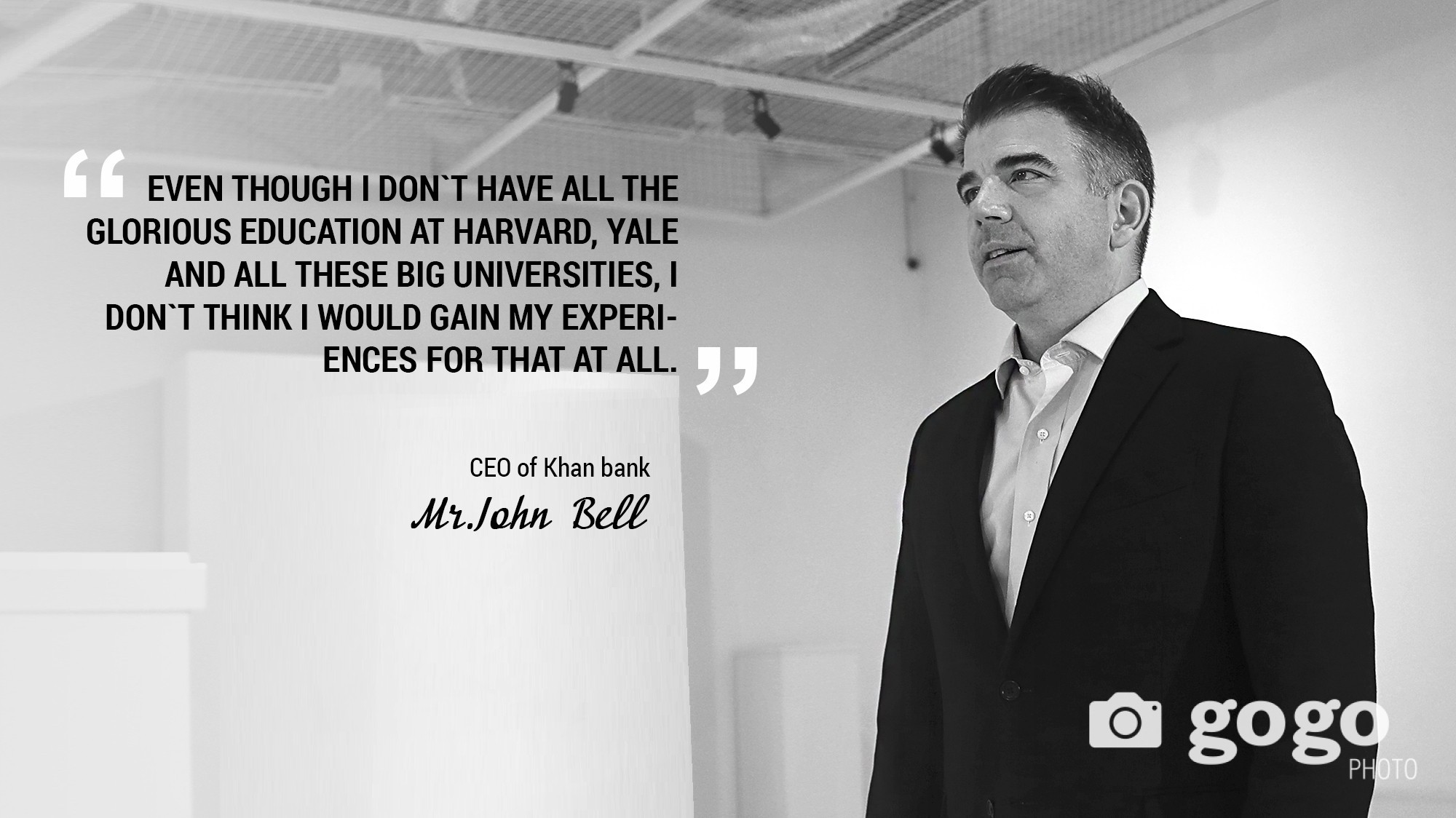 -I think the main reason why they brought me in was just to help with best practices from other commercial banks. As I said, basically, to help to at least start the journey toward becoming a world class bank. Also, my job is to help to build the bench strength of the management teams, so that in the future, the executive team will be much more prepared to drive the bank's strategy as a world class financial service organization. In fact, I'm not the only one managing this large bank’s day-to-day activities. Perhaps I bring in an international perspective and standards, or a long-term vision to the management conversation, based on my expertise. Most of our bank’s management team are experienced and professional Mongolians.