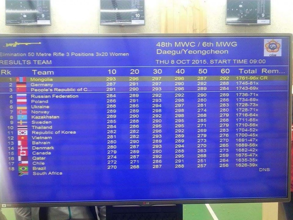 Women team for rifle was composed of G.Nandinzaya who qualified for the Rio 2016 Summer Olympics, O.Yanjinlham and Ch.Narantuya.