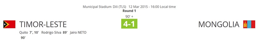 At the qualifier of the FIFA World Cup, Mongolia lost against East Timor.