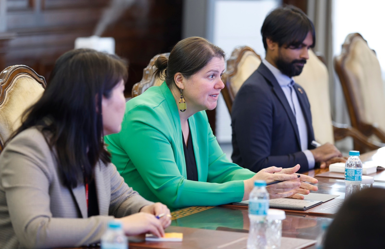 On November 18, 2024, D.Amarbayasgalan, the Speaker of the Mongolian Parliament, held a meeting with Sandra Choufani, the Ambassador Extraordinary and Plenipotentiary of Canada to Mongolia. The two parties exchanged views on the growing relationship and cooperation between their countries' legislative bodies.
