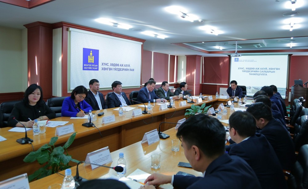 Batzorig Batjargal, Minister of Food, Agriculture and Light Industry, briefly introduced the objectives and actions of the ministry, and presented the eight draft resolutions on improving the legal environment of the sector, six other laws and eleven national programs planned to be implemented in 2018.