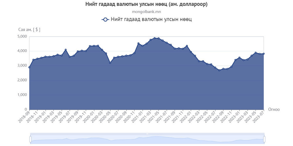 However foreign exchange reserves increased, MNT has weakened against the USD and is equal to MNT 3473. 1 USD was equal to MNT 3440 in July.