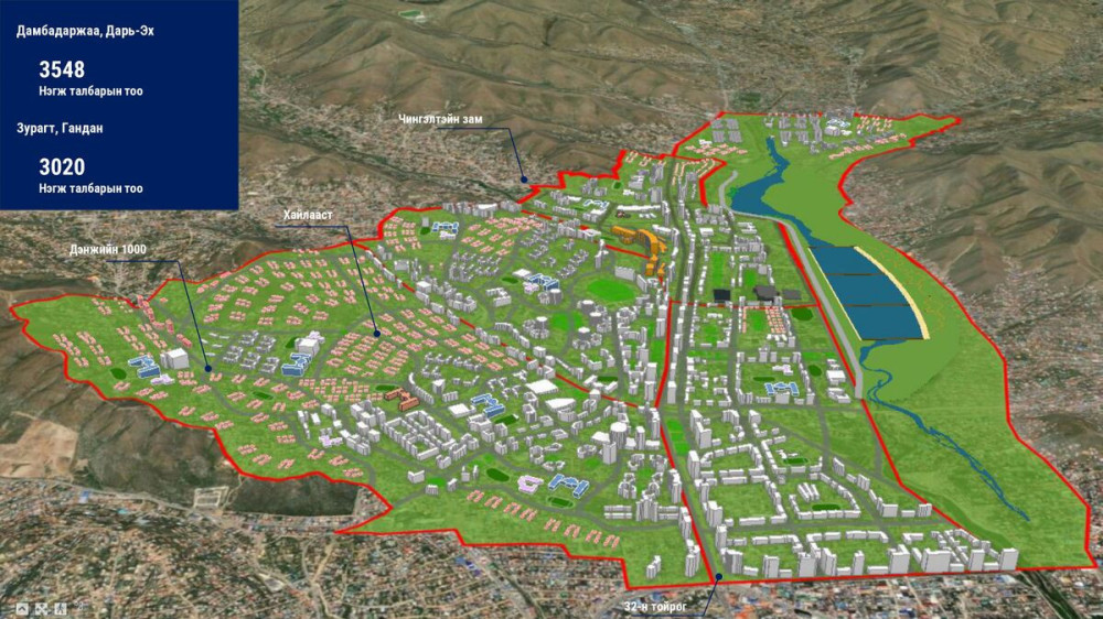 The land of 2,000 households can be vacated to build a residential complex of 12,000 households, low-rise, with green areas and parks. Of this, 60 percent are green areas, parking lots, and playgrounds, and 40 percent are buildings. With the construction of the apartments of 12,000 households in Selbe sub-center, 2,000 land-owning households will be able to move into their apartments, and households in Khailaast, Chingeltei, Tavan Buudal, and Dari Ekh areas will be included in the remaining 10,000 apartments.