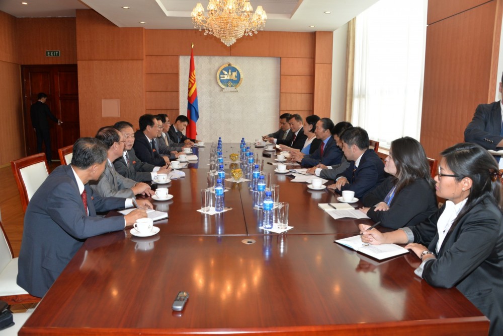 Members of the State Great Hural, members of Mongolia-DPRK parliamentary group Mr.O.Baasankhuu and Mrs.D.Oyunkhorol, Ambassador Extraordinary and Plenipotentiary of Mongolia to the DPRK Mr.M.Ganbold were present at the meeting and the other part was represented by a member of the Supreme People's Assembly (SPA) Mr.Ryom In-yun, Deputy head of foreign relations section at the SPA Mr.Kim Kyong-ho, senior official of foreign relations section at the SPA Mr.Ri Chol-su and an expert at the Asian affairs department of Ministry of Foreign Affairs of the DPRK, reported by the Press and Public Relations Department of the State Great Hural of Mongolia.